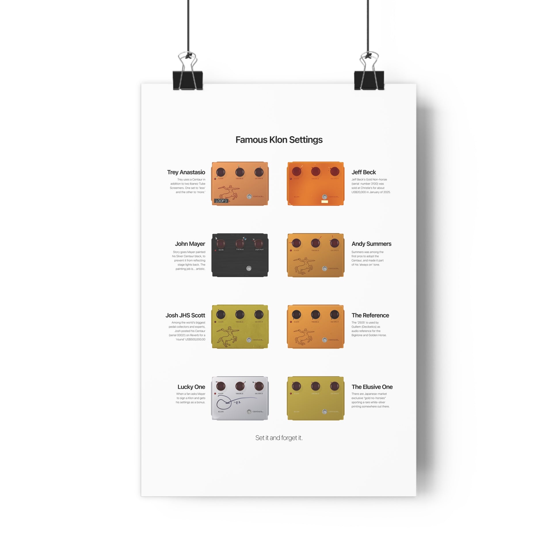 Signal Chain Theory's original illustrations perfectly capture unique patterns in guitar culture with museum-quality fine art prints. Each premium quality poster is giclée-printed on a thick, archival, acid-free, and durable matte paper. These detailed and stylized prints make the perfect gift to any guitar aficionado, effects pedal-collector and music lover.
